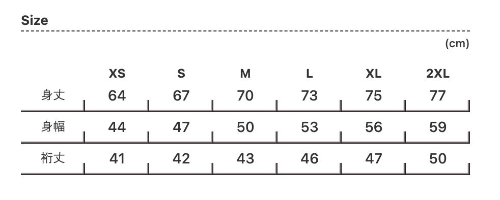 身丈 67 70 73 75