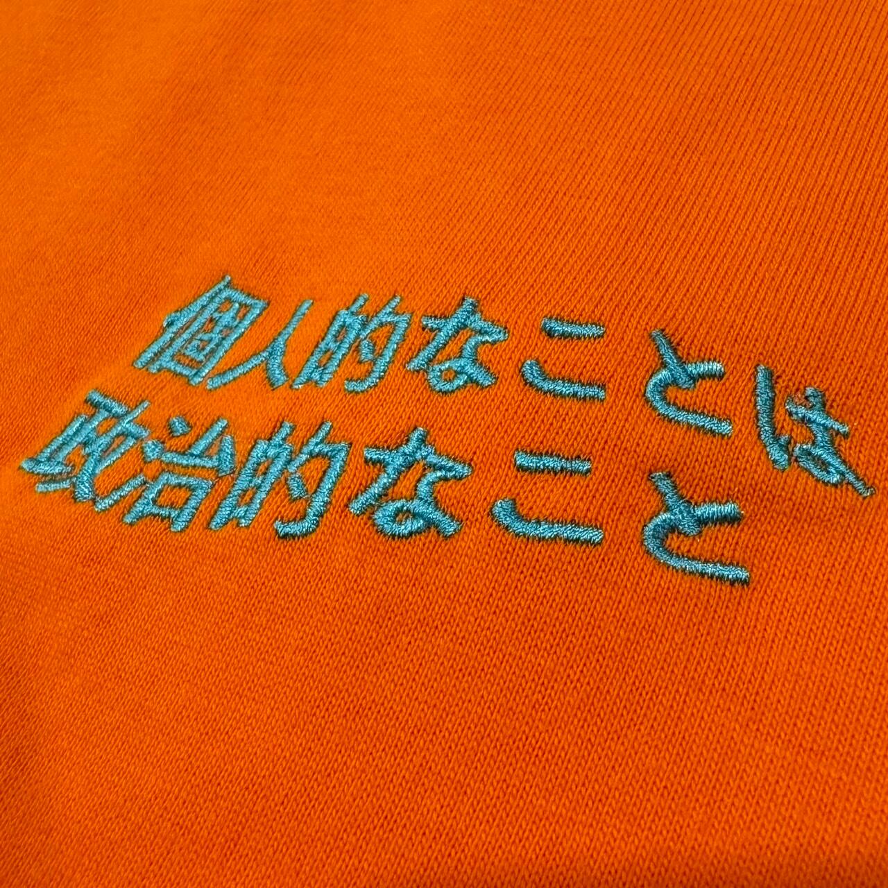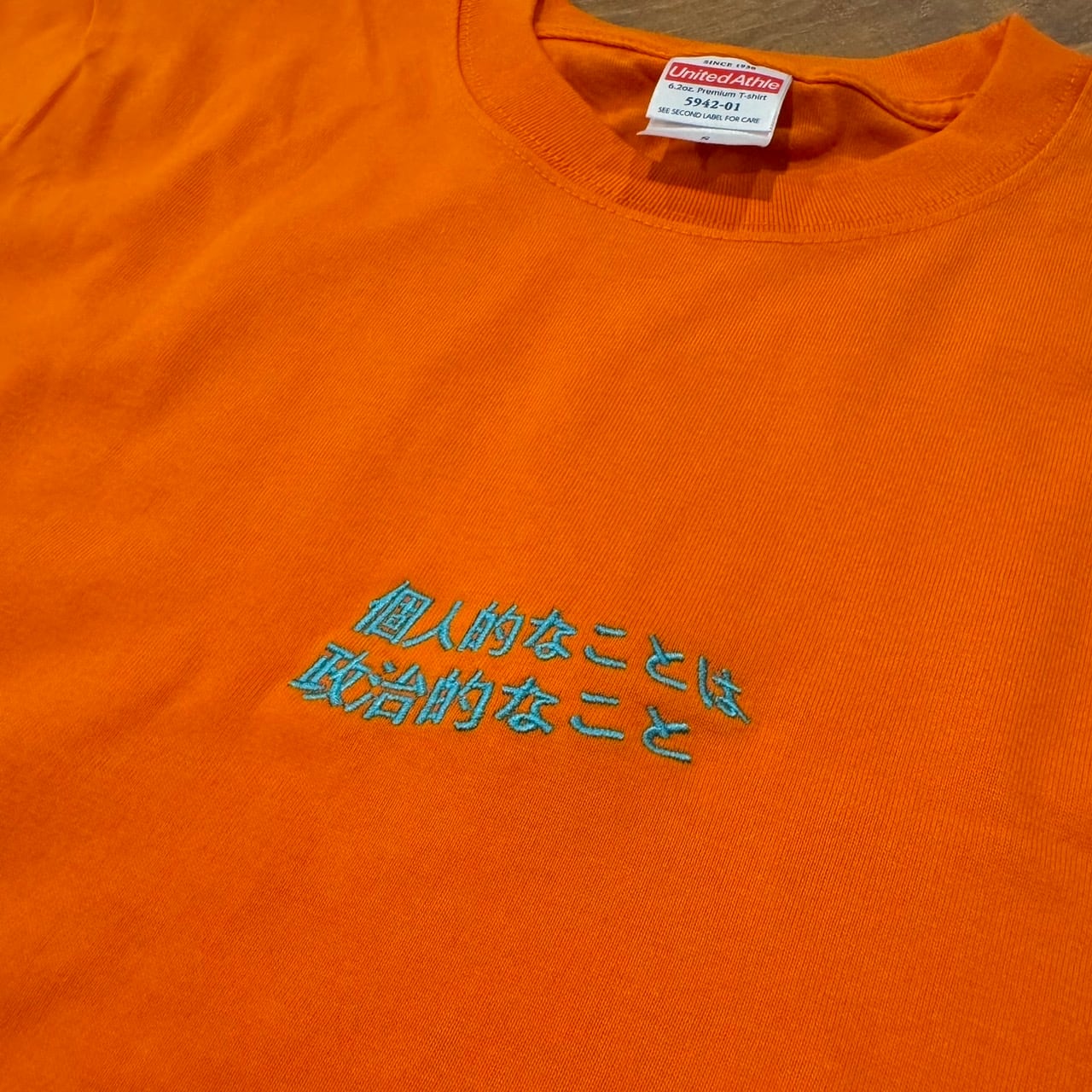 胸元に「個人的なことは政治的なこと」を刺繍したTシャツです。
